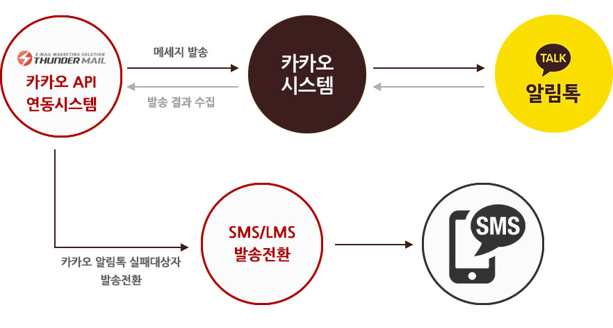 카카오 알림톡으로 발송했으나 실패한 메시지는 고객의 요청에 의해서 SMS/LMS로 전환 발송할 수 있도록 구현이 가능합니다.
